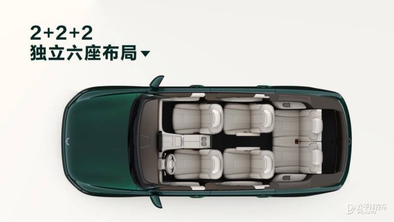 车身侧面造型酷似问界M7,配备传统机械式门把手和20英寸多辐式轮毂,搭配米其林轮胎。车身尺寸方面,新车长宽高分别为4980/1930/1760mm,轴距为2950mm,采用“2+2+2”六座布局。